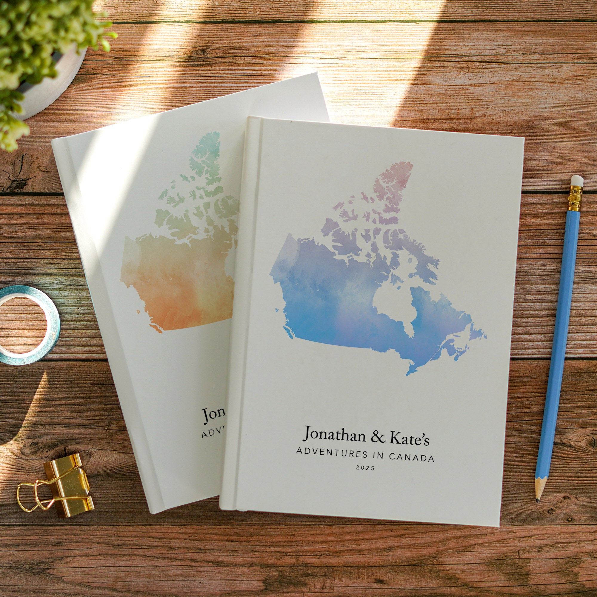View AllPersonalised journals with blank or ruled pages and a custom map of any country in two watercolour shades