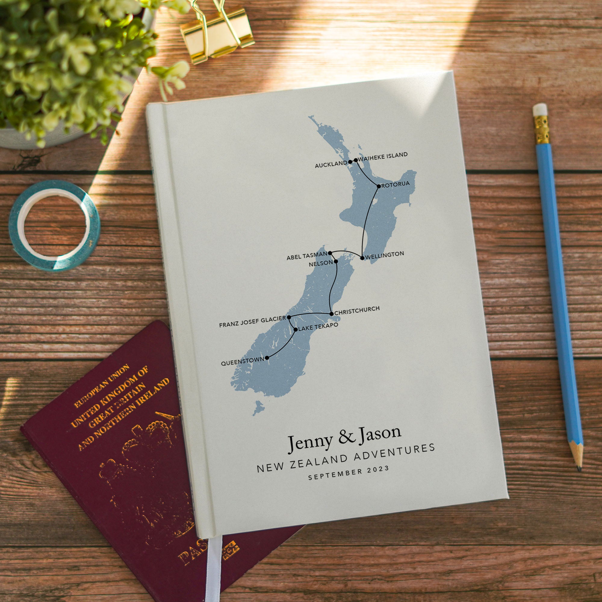 View AllPersonalised journals with a custom map and travel path. Blank or ruled pages. Blue or Beige map.