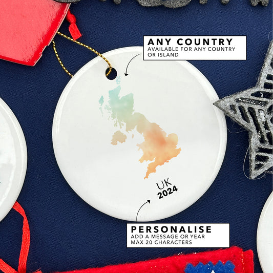 UK Map Personalised Christmas Tree Ornament