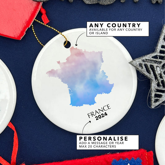 France Map Personalised Christmas Tree Ornament