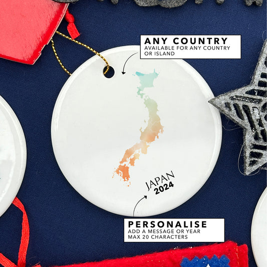Japan Map Personalised Christmas Tree Ornament