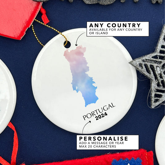 Portugal Map Personalised Christmas Tree Ornament