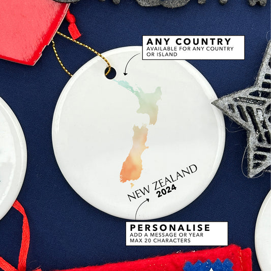 New Zealand Map Personalised Christmas Tree Ornament