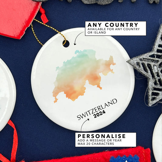 Switzerland Map Personalised Christmas Tree Ornament