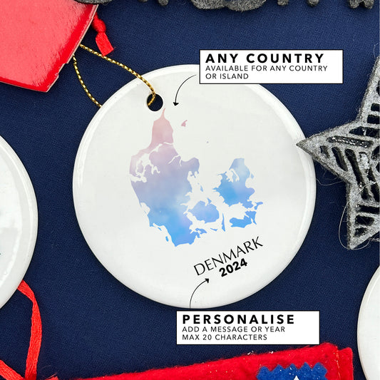 Denmark Map Personalised Christmas Tree Ornament