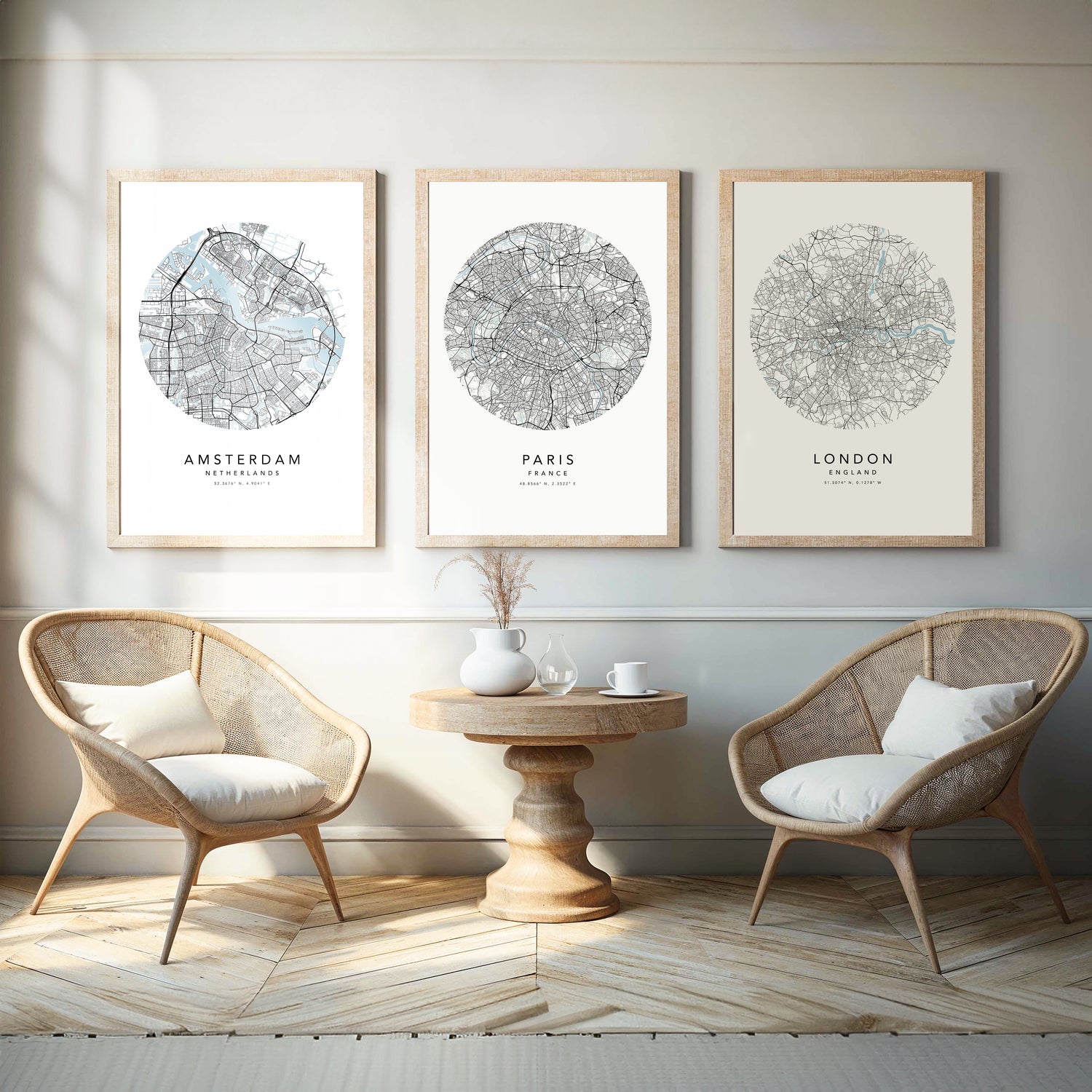 Stylish, minimalist city maps with optional personalisation. Available for any city, town or island as a single print or bundle of three.