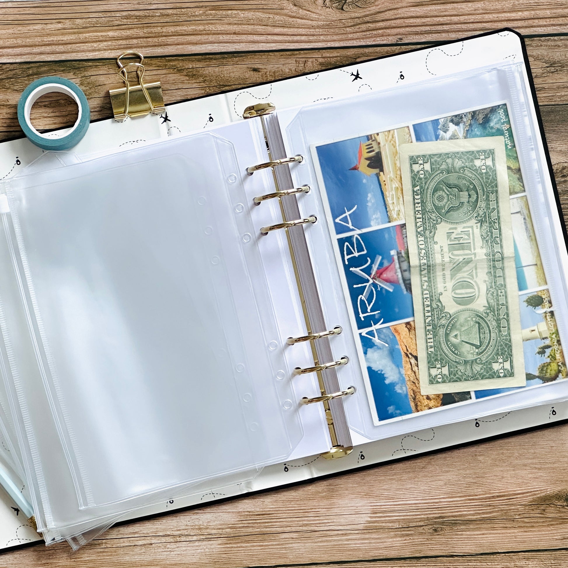 A5 Memorabilia Pocket for our Ultimate Travel Journal Binder. The pack includes 10 zippable bags to protect travel treasures and other keepsakes.