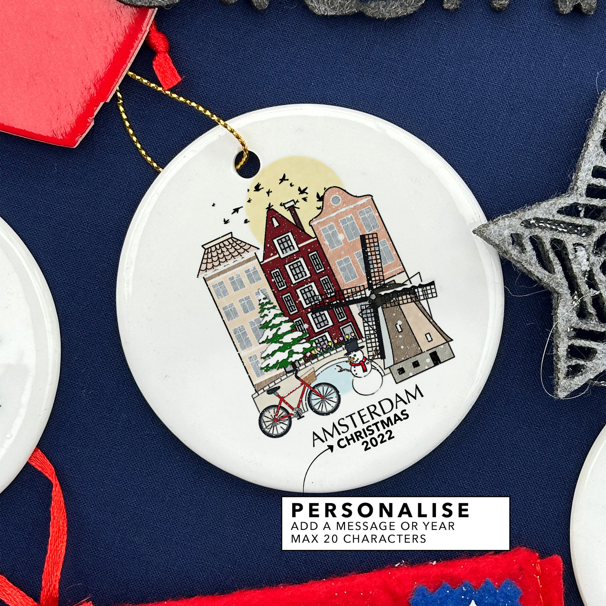 Amsterdam Netherlands Personalised Christmas Tree Ornament