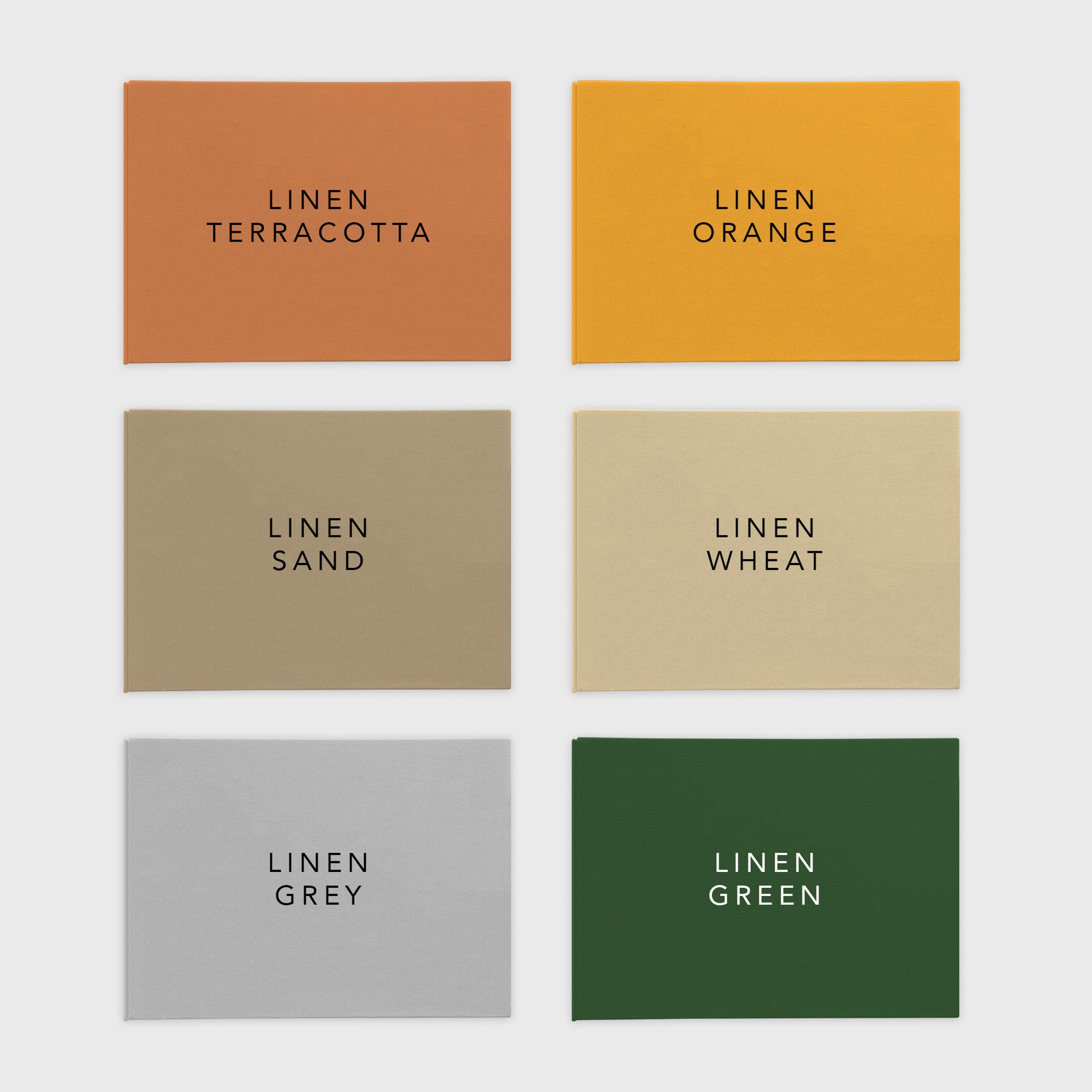 Timeless, elegant, minimalist covers in many shades with gold/silver hot stamping and optional dust jacket.
