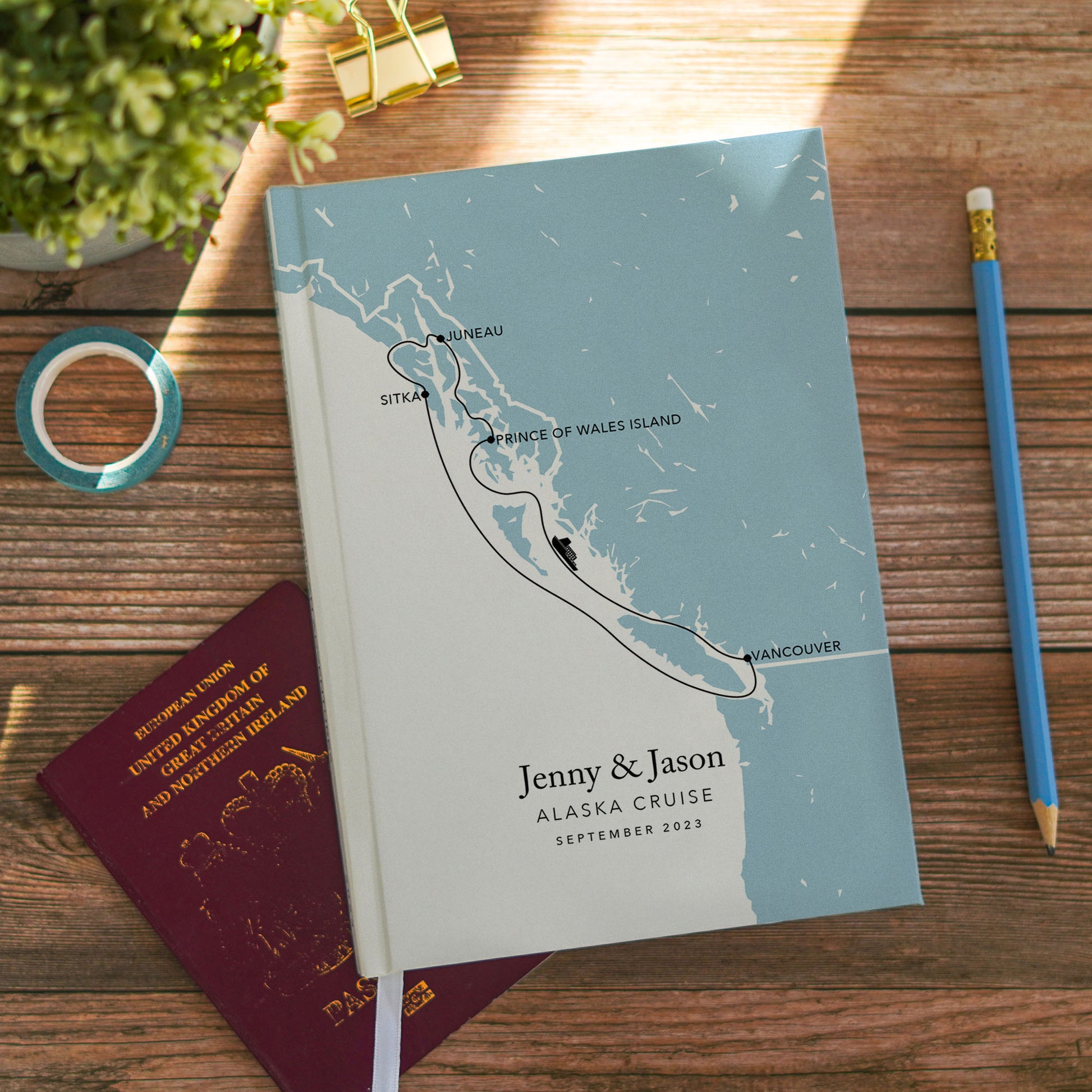 Travel Journal/Notebook with custom map and personalised titles. Add your travel destinations to the cover of your notebook and personalise the main titles. The land section of the map are coloured while the water areas are white. Perfect for making notes, writing a diary or for drawing. Personalise it for a special gift or before embarking on your next journey!