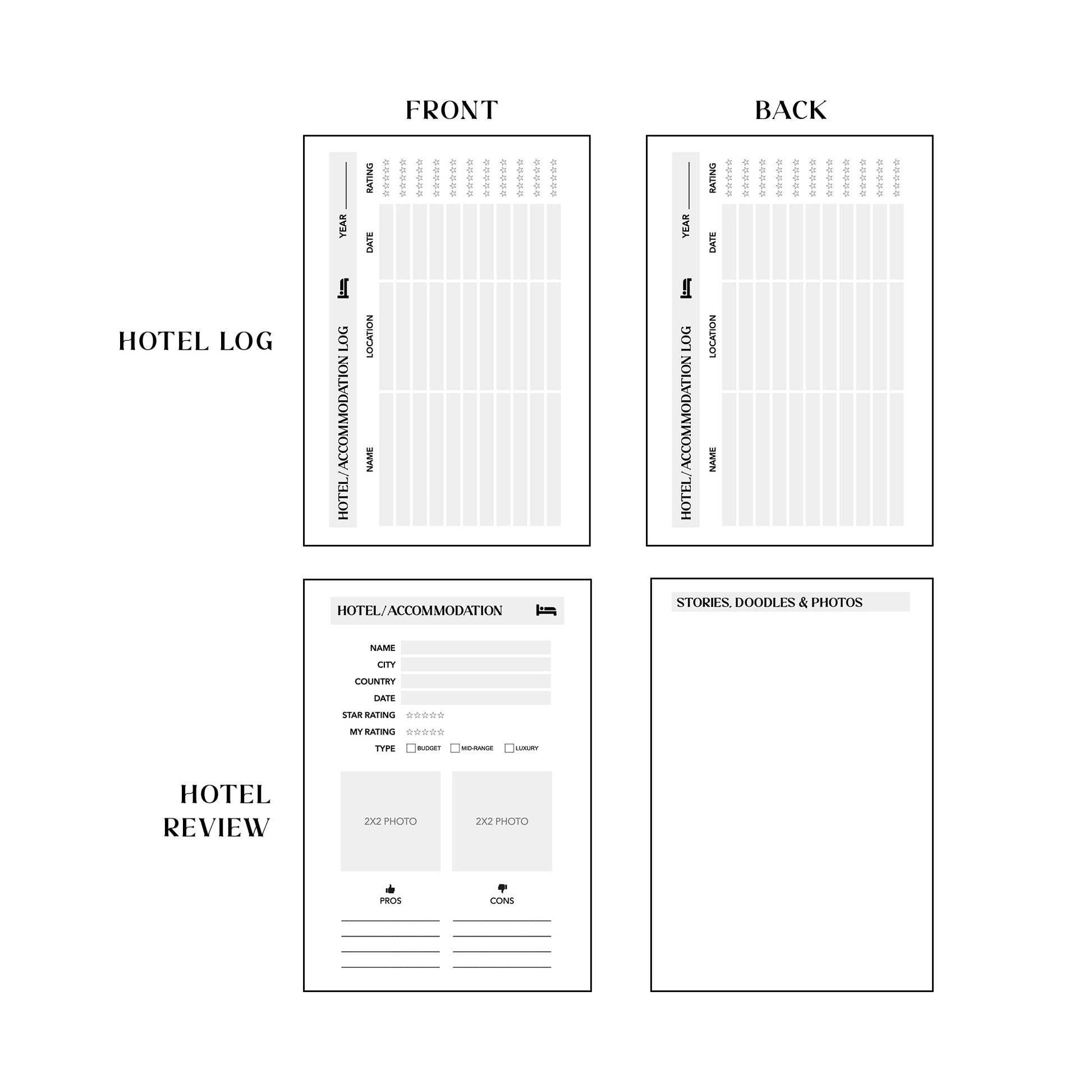 Hotel review/Hotel Log Ultimate Travel Journal Insert