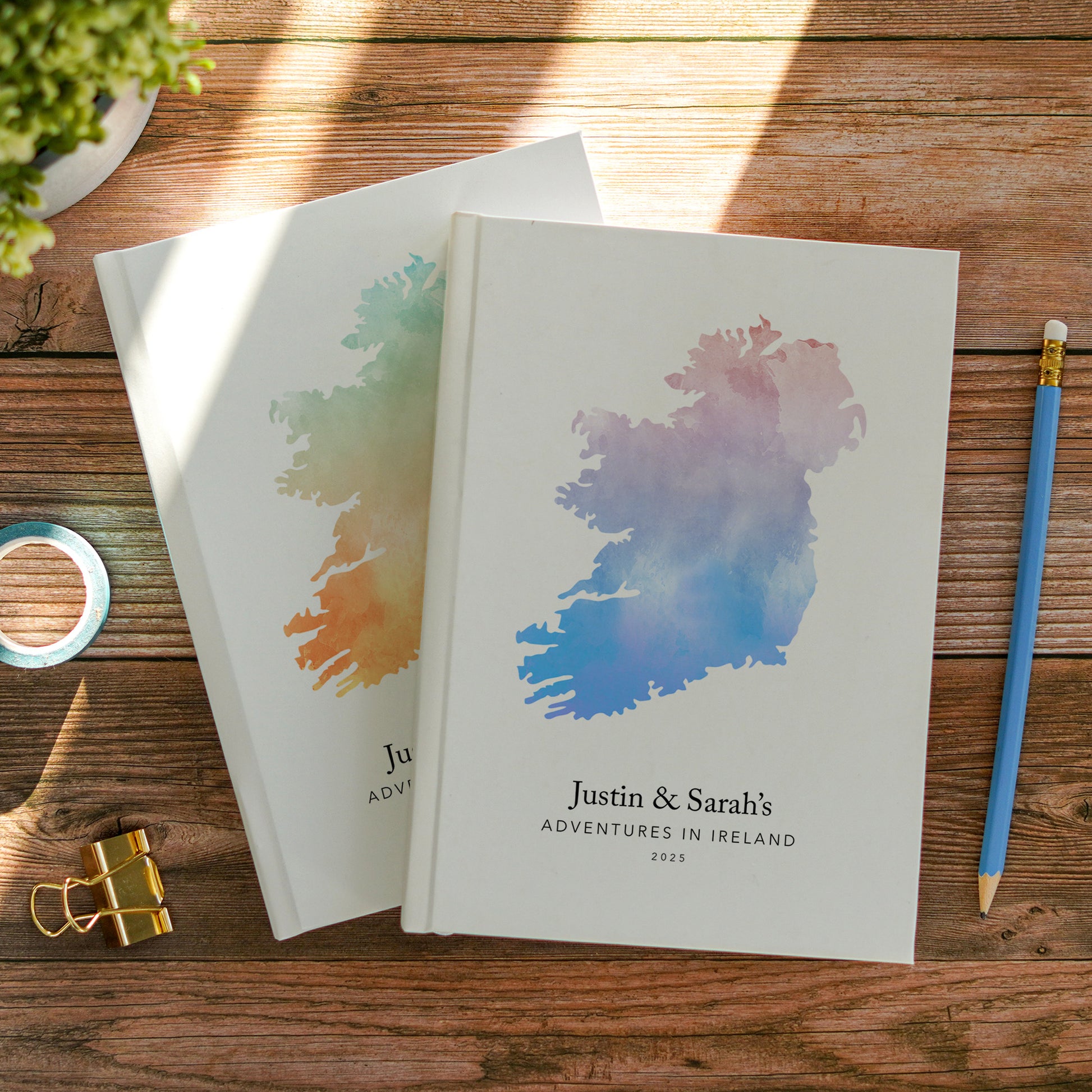 Stylish watercolour travel journal with personalised titles. Perfect for making notes, writing a diary or for drawing. Personalise it for a special gift or before embarking on your next journey!