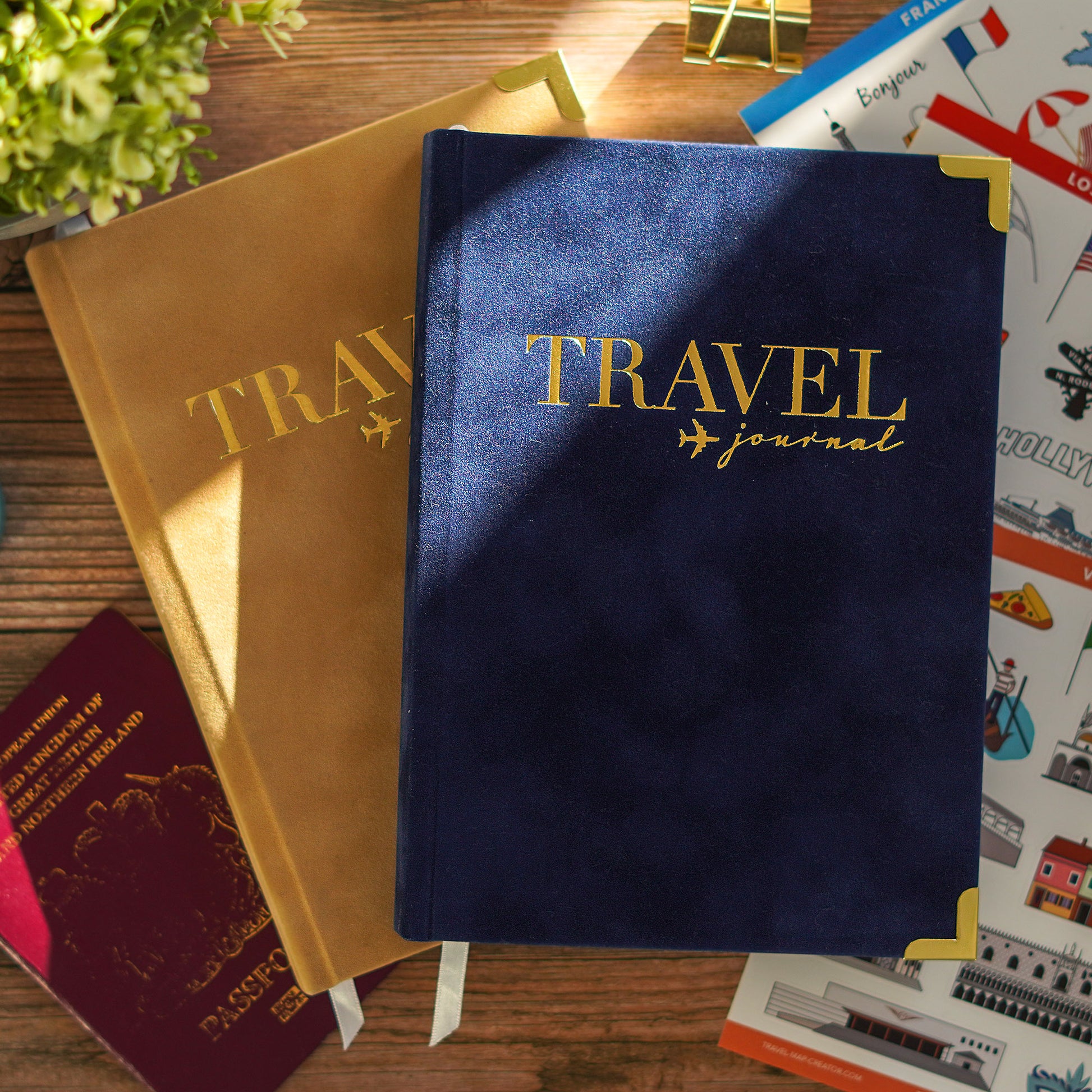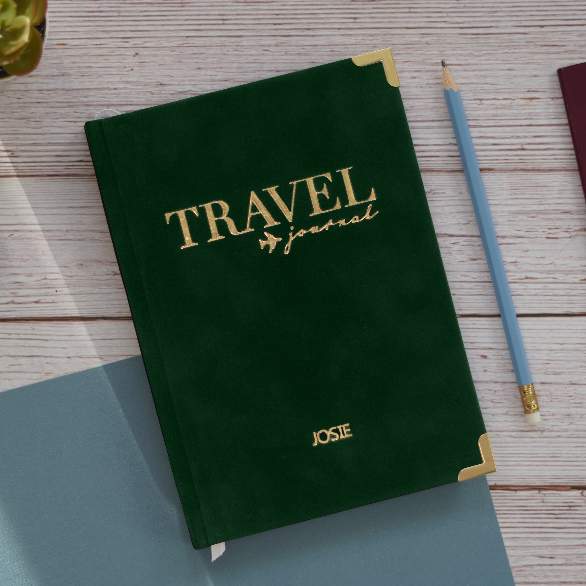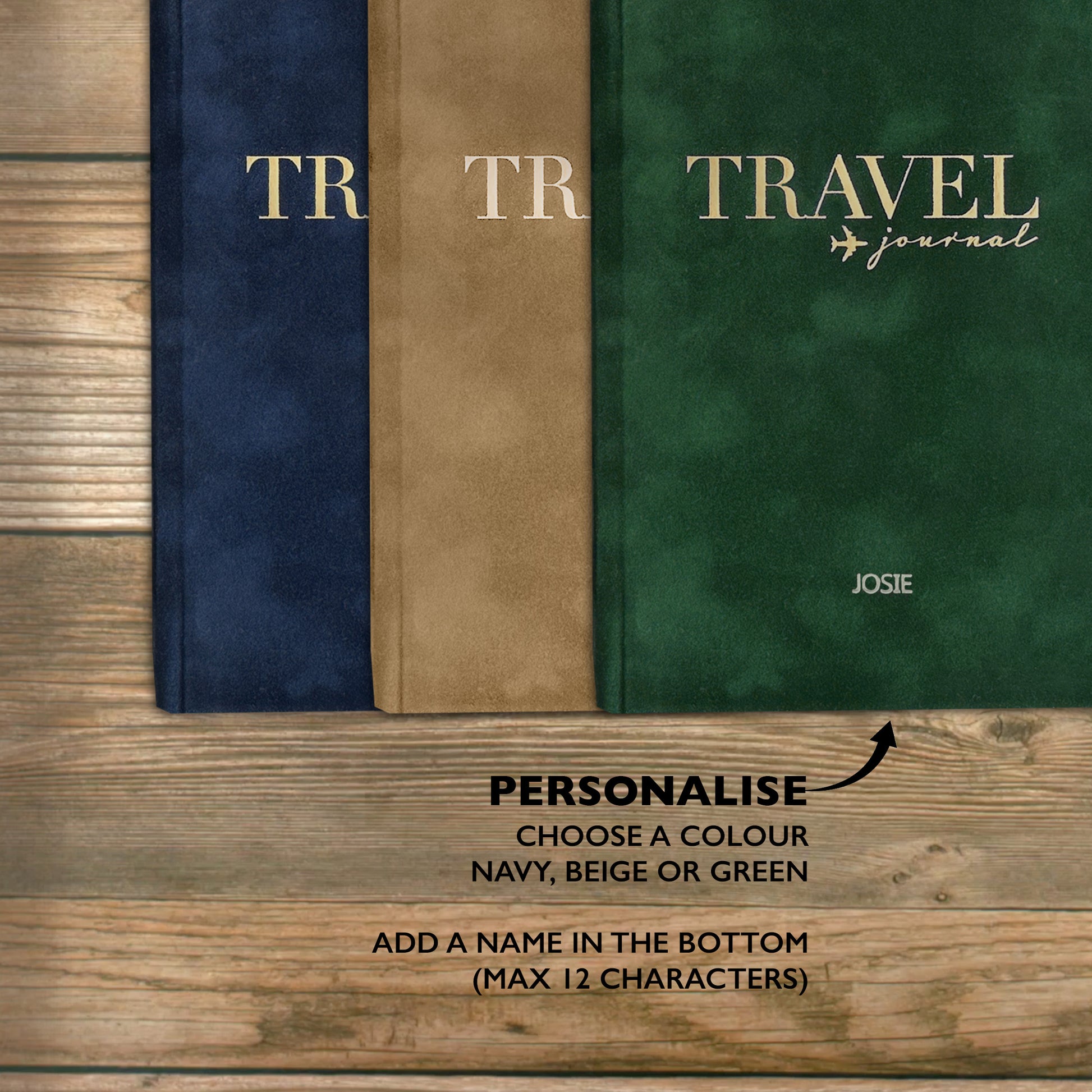 Elegant, luxury travel journal/notebook wrapped in a soft, smooth suede/velvet cover with personalised name on the front. This beautiful travel journal is perfect for documenting multiple journeys from around the world. The printed templates will guide you and make journaling more fun. Perfect gift for those who love travelling! Check out my other listings for different cover styles, custom map journals, illustrated journals or fun travel stickers.
