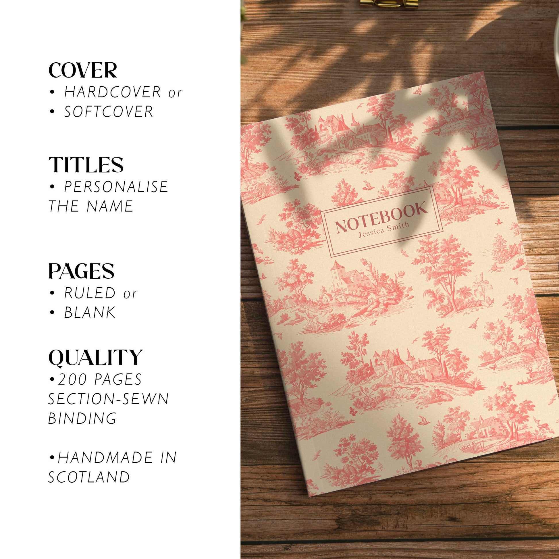 Pink Toile de Jouy Luxury Personalised Notebook/Diary/Journal