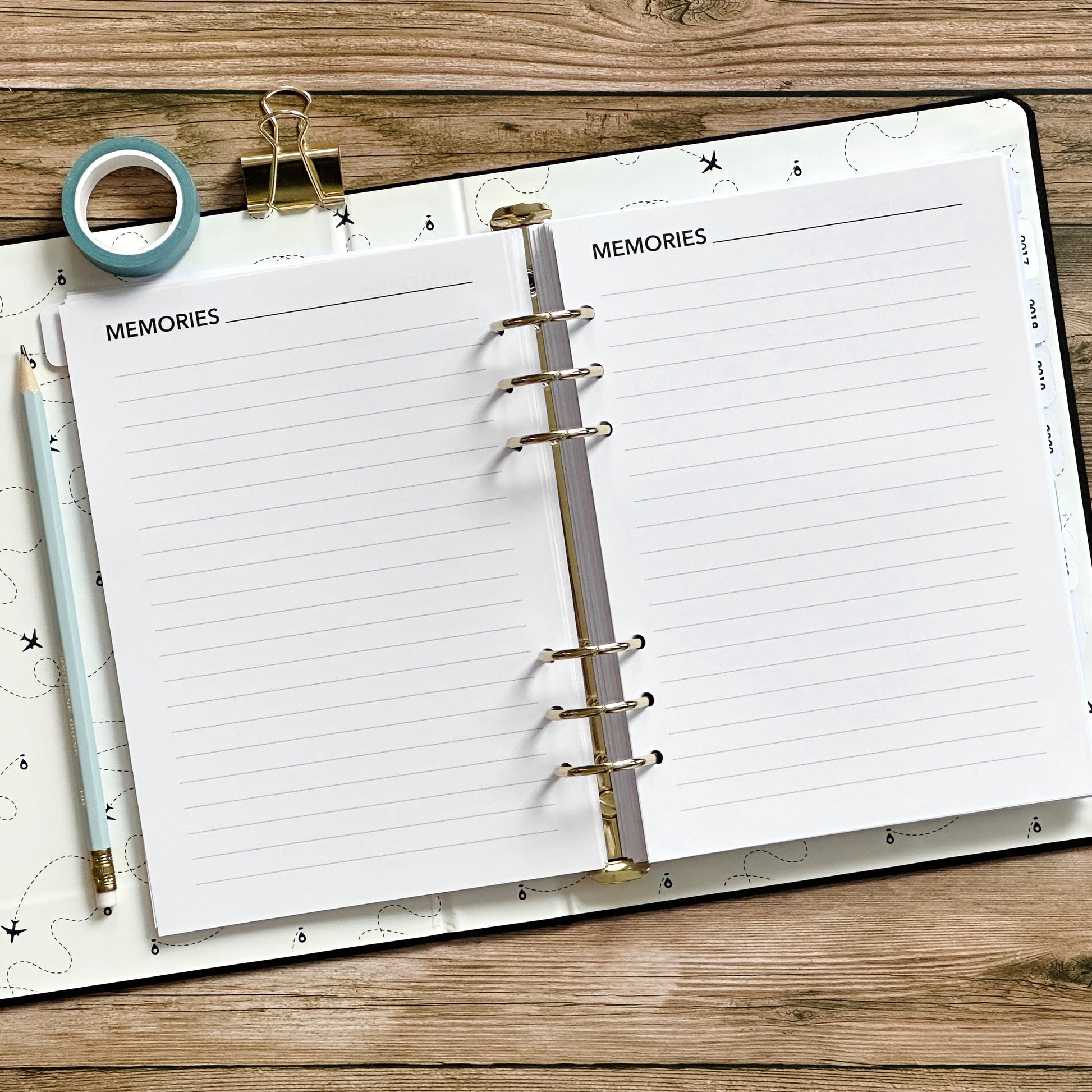 Ruled Memories Page Refill [100 pages] - Travel Journal Binder Insert
