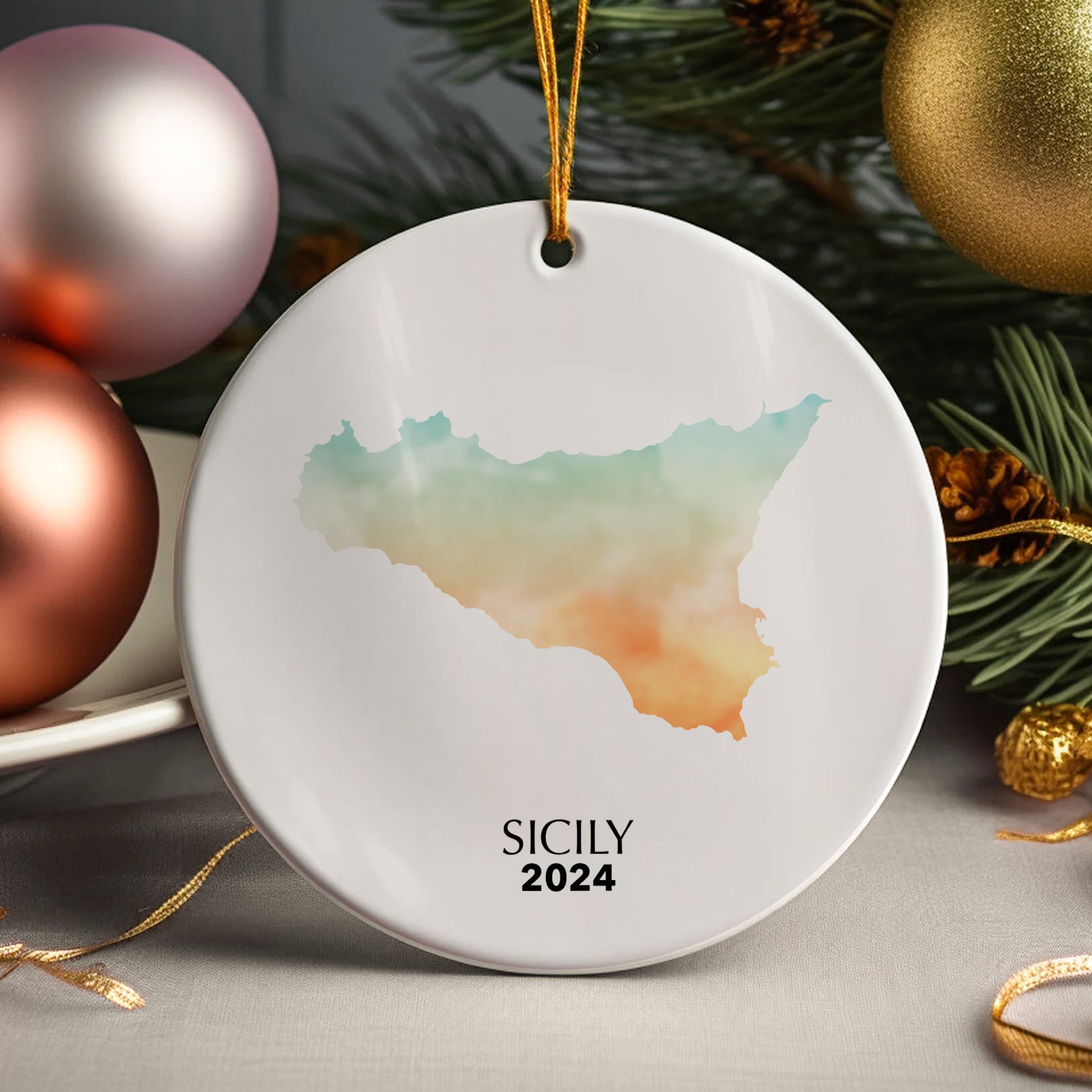 Sicily Map Personalised Christmas Tree Ornament