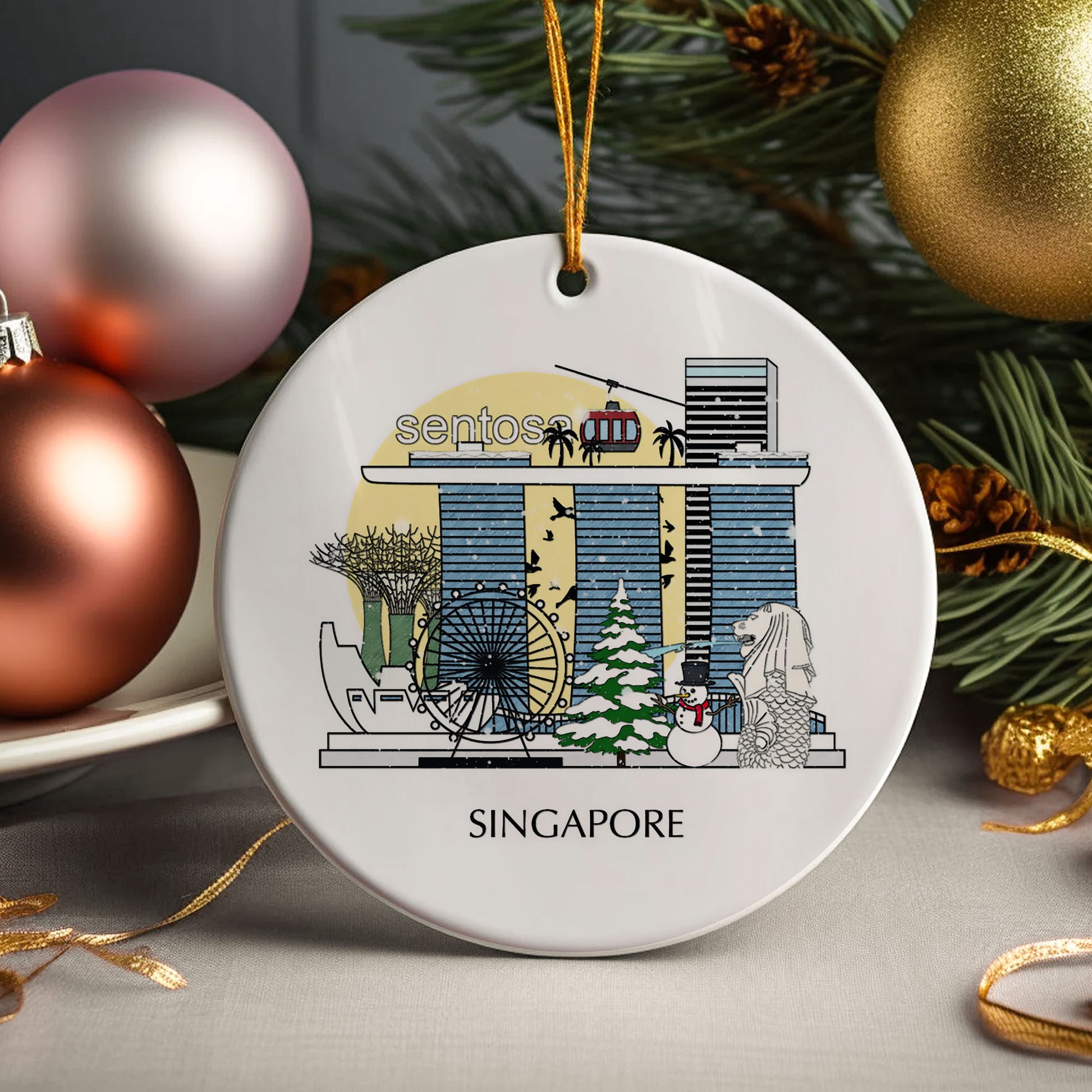This ceramic ornament is not just a decoration; it’s a cherished reminder of special memories tied to the city, perfect for commemorating a trip, celebrating a hometown, or gifting to someone who holds a particular place close to their heart. The ornament comes with a gold ribbon for easy hanging, making it a delightful addition to any Christmas tree.