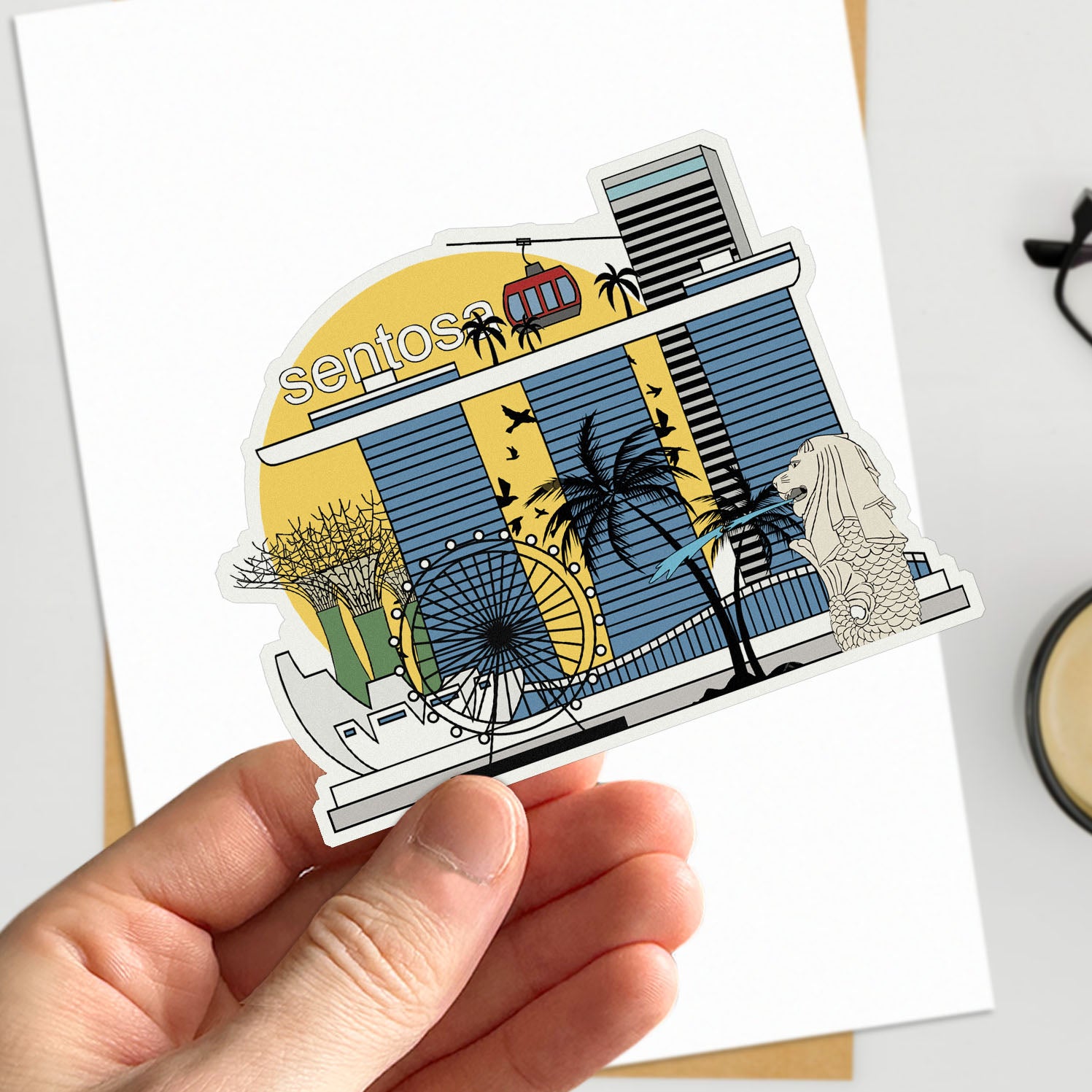 Includes landmarks, local foods, a visa stamp, a country map, a flag and other local goodies.