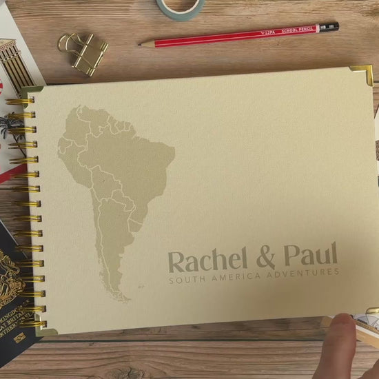 The design is printed directly onto a natural linen cover with golden corner protectors. The inner pages are thick, 250gsm card stock for a luxurious feel. The wire binding allows for easy flipping. It's available for many countries and regions. If you can't find your dream destination, just get in touch for a custom location. Check out our travel sticker collection and other scrapbook accessories!
