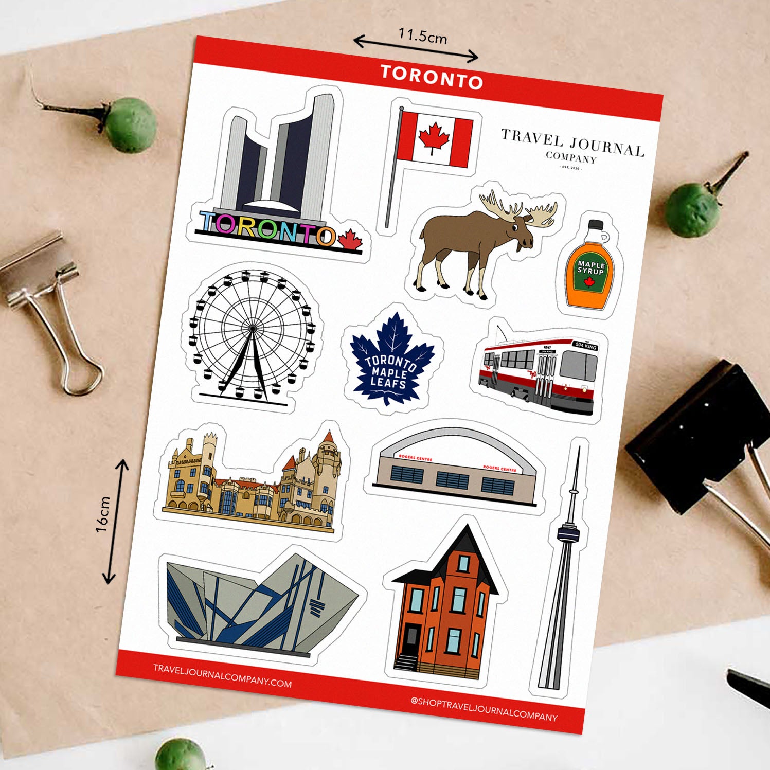 The sticker sheet is 16x11.5 cm (6 1/2 x 4 1/2 inches). It's printed on waterproof, matt vinyl paper with permanent adhesive. The stickers peel off individually.