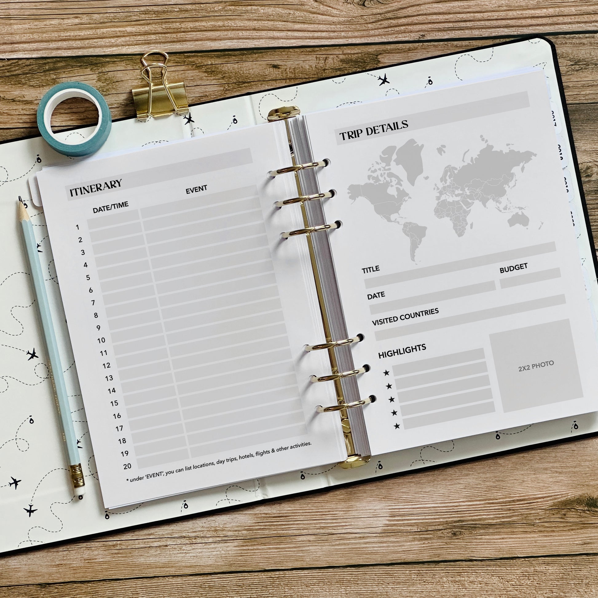 Trip details/Itinerary Page Ultimate Travel Journal Insert
